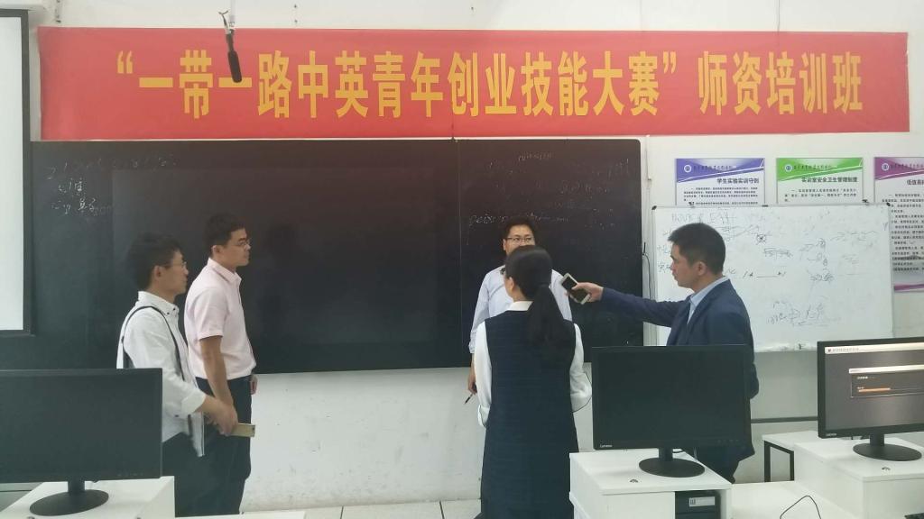 南京工业职业技术学院商务贸易学院副院长阮晓文、公共基础课部主任陈桃源以及相关教研室负责人参加本次调研。双方分别介绍了所在学院概况,并着重在商务英语专业实训室建设、校外技能竞赛、校企合作、数学建模实训室以及公共英语教学改革等方面进行深入交流,效果良好。
