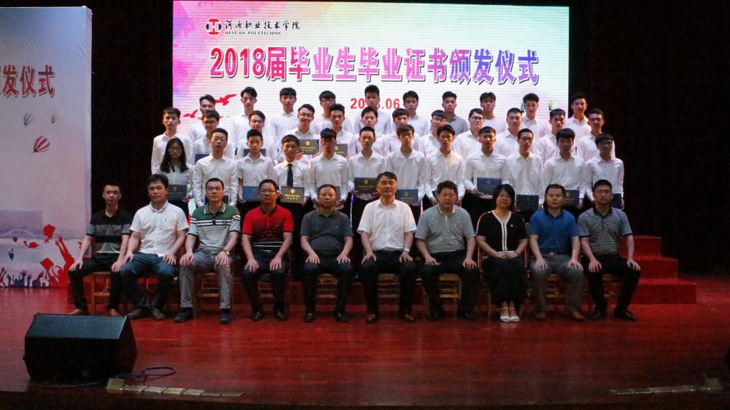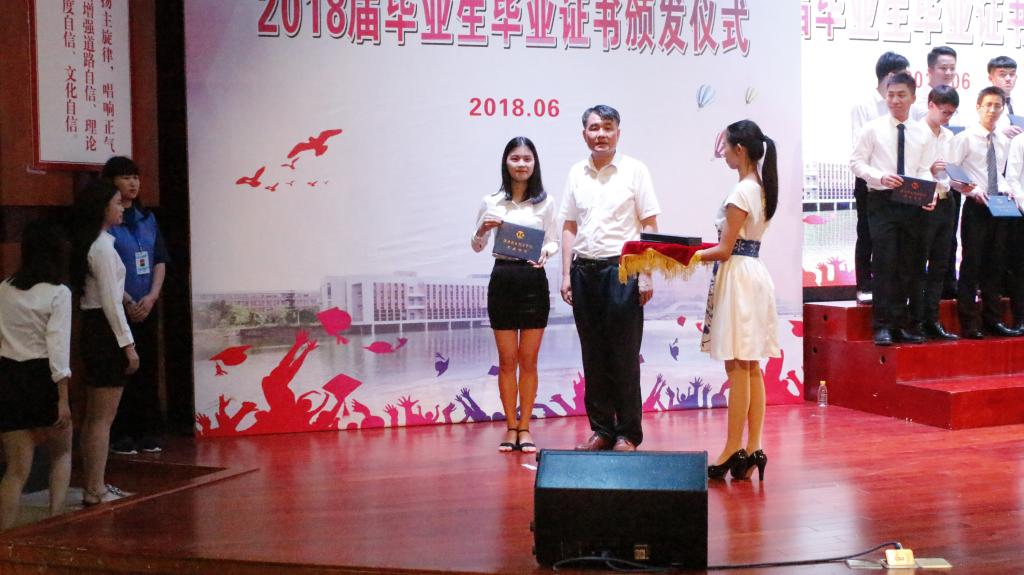 6月28日上午,电信学院于艺术楼演播厅举行2018届毕业生毕业证书颁发仪式。出席人员有学校校长陈德清、副校长陈农心、学生工作处处长何智聪、教务处副处长李文萍、学生工作处学生管理科科长邹远泉、电信学院领导班子成员、电信学院各专业主任、辅导员、15级各班班主任、全体毕业生及非毕业班学生代表。
