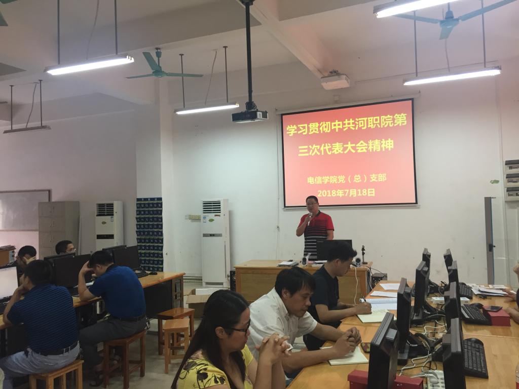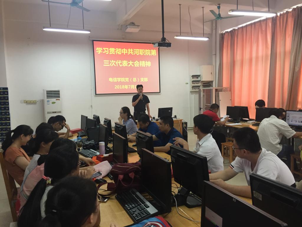 2018年7月18日下午,我院在实训楼A213召开学习贯彻中国共产党mksports官方网站登录入口第三次代表大会精神会议,学院全体教职工参加了本次会议,由学院副书记徐国辉主持。