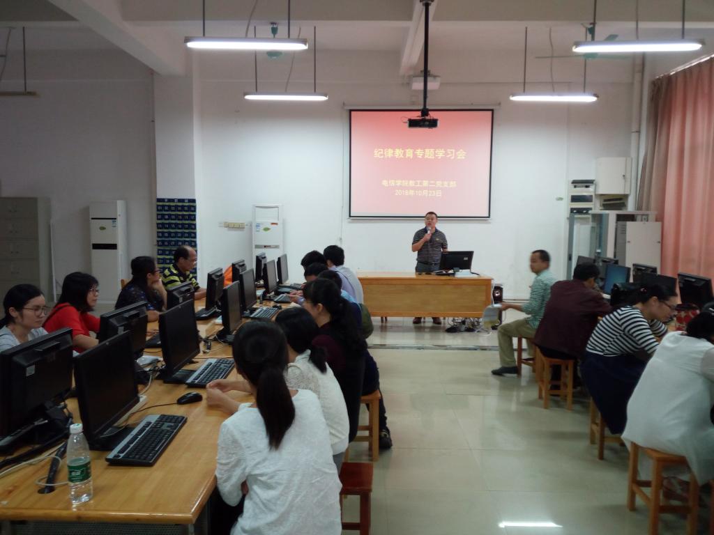 10月23日,电信学院教工第二党支部于实训楼A213召开纪律教育专题学习会。党支部全体党员参加了此次专题学习会,会议由党支部书记周永福同志主持。