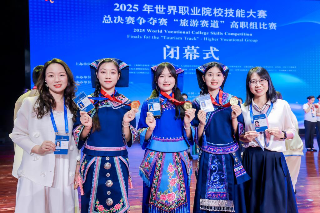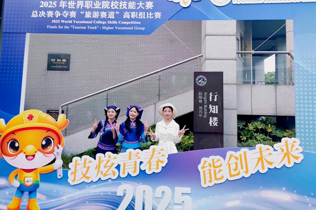 2025年8月23日至27日,2025年世界职业院校技能大赛总决赛争夺赛“旅游赛道”高职组比赛在浙江旅游职业学院举行。本次比赛由教育部等单位主办,浙江省教育厅承办,杭州市人民政府、浙江旅游职业学院协办,吸引了来自全国32个赛区的174支队伍共1300余名师生同台竞技。面对高难度的合并赛道新赛制,我校旅游管理专业群派出张颖为领队,伍新蕾、谭健萍为指导老师,带领来自旅游管理专业的陈钰婷、陈心怡、赵芷琪三位同学,凭借出类拔萃的专业技能、精益求精的职业素养、齐心协力的团队精神,脱颖而出、斩获金奖,充分展现了河职旅游师生的奋进与拼搏!